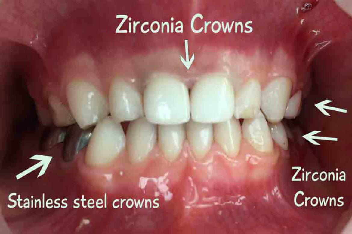 Zirconia crowns are metal free crowns that prevents Gingival Darkening as seen in metal ceramic crowns.